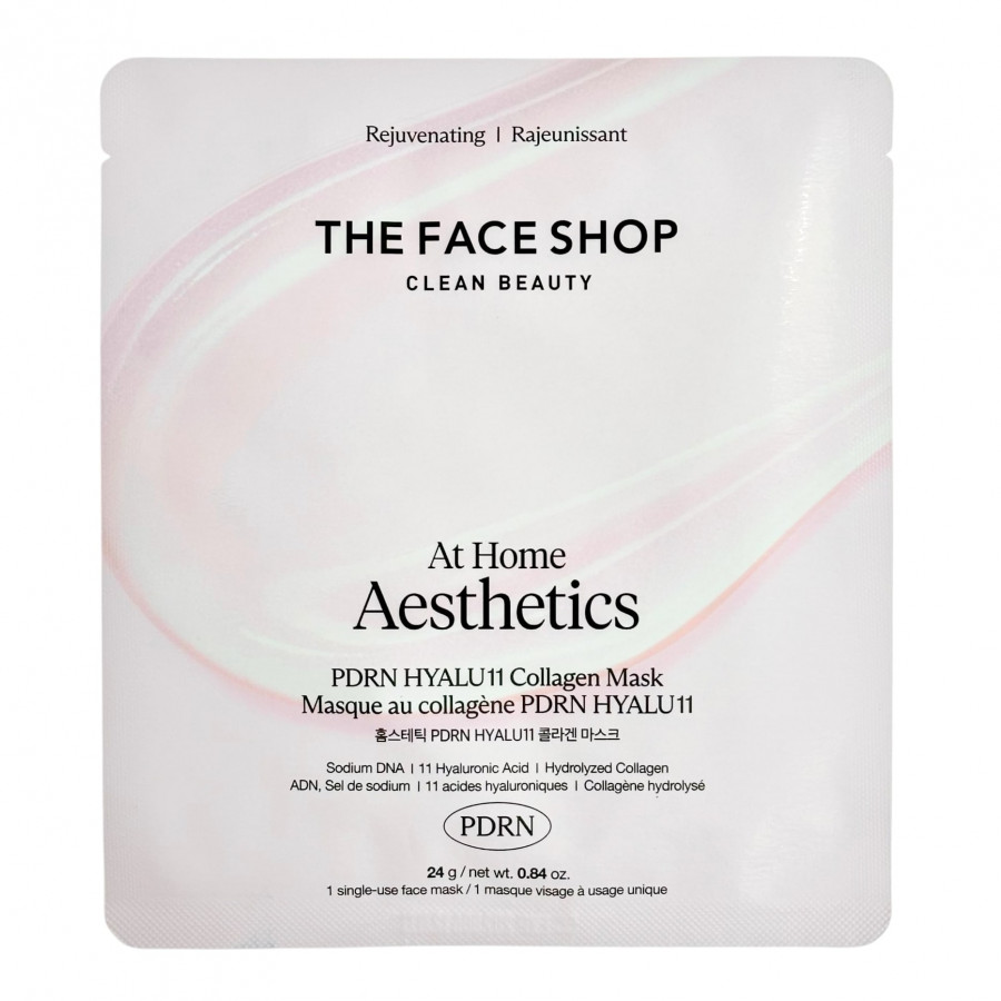 Гидрогелевая маска содержит морской коллаген и комплекс пептидов, протеины и лактобактерии, аргановое и масло шиповника, лактобактерии и PDRN, низкомолекулярную гиалуроновую кислоту, ниацинамид и аденозин, экстракт гриба тремелла и токоферол.